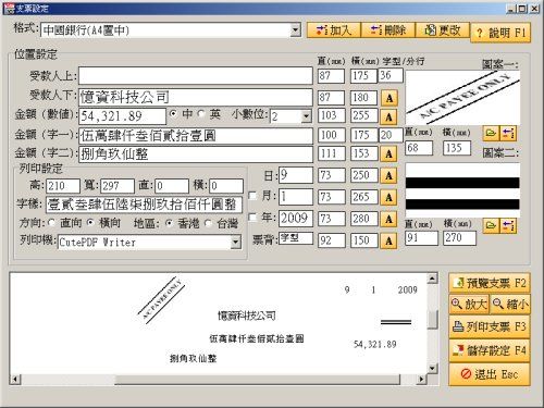MemDB支票列印系統能夠做到很多一般支票機所不能的事情。例如儲存和列印收款人名稱、開票報表、列印中文銀碼或英文銀碼等。MemDB支票列印系統將讓你能夠用印表機取代傳統的電子支票機,不用再考慮花費數千元購置支票機了。
